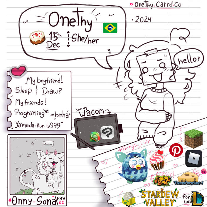 I'm a Brazilian artist who currently draws and studies programming, in the future I will have my dev card.